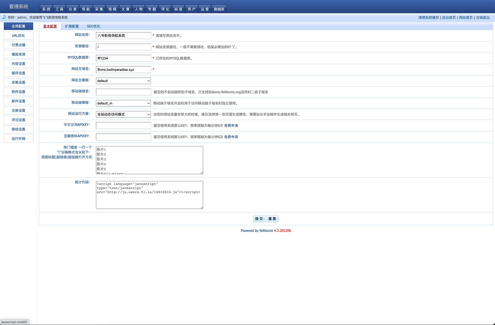 其余的大家在后台看一下,修改一下自己的网站信息即可