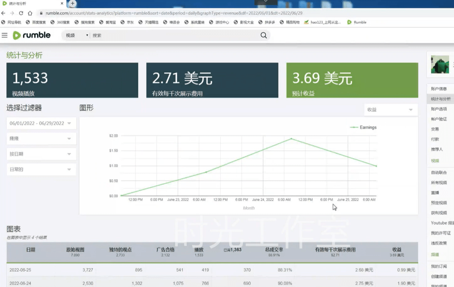 在里面注册账号发布作品,只要有播放量,rumble平台就会给你收益